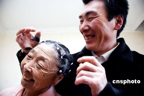 12时30分,手术圆满结束了,主刀的刘医生告诉记者,给马玉琴切去头皮的宽度大约在2.8厘米(一般除皱手术切头皮在1厘米左右),这主要是因为老人皮肤过于松弛,皱纹太多。等手术后的水肿等完全消失后,马玉琴看上去将比现在看着年轻至少30岁。在马玉琴手术的两个多小时中,他的丈夫李玉成一直等候在手术室外,不时地从手术室的门缝往里望,显得很紧张。13时05分,手术结束,马玉琴被推出了手术室。医生说,手术后她的脸会出现几天的浮肿,大约一个星期左右就可以恢复正常。中新社发 赵敬东 摄
