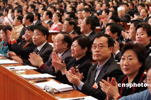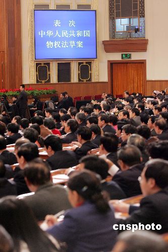 十届全国人大五次会议三月十六日上午在北京人民大会堂闭幕,会议表决通过中华人民共和国物权法草案。中新社发 毛建军 摄