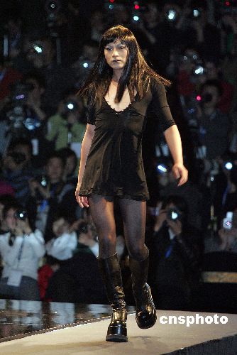 二零零七年“吉米”彩装流行趋势发布三月十八日晚亮相中国国际时装周,著名造型设计师吉米亲自男扮女装走上T台,赢得观众喝彩。中新社发 毛建军 摄
