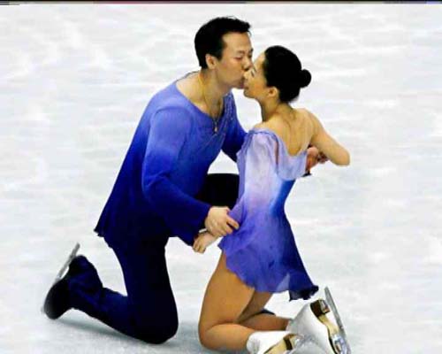 赵宏博:向小雪求婚。然后在比赛之后,看到全场观众很多人都站起来了,那一瞬间,我一直盯着她几秒钟,然后我跪下来了,抓住申雪一只手,但是小雪“配合”很快,马上她两腿跪下了。