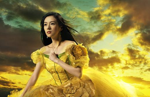 这是章子怡上一支同类广告中的形象,非常有女王气势。