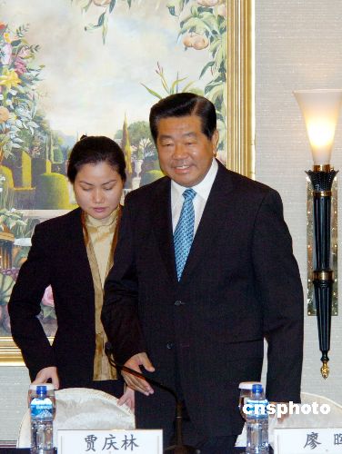 6月28日下午,正在香港访问的全国政协主席贾庆林,到香格里拉酒店与香港全国政协委员座谈。中新社发 洪少葵 摄