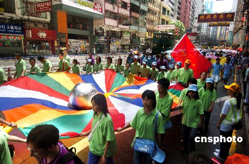 香港“七一”举行“庆祝香港回归九周年 和谐 团结 发展 大巡游”。这项活动由十九个社会团体发起﹑约七百个单位参加﹑三万余市民参加出发仪式﹑一百个演出单位沿途向市民进行特色演出。