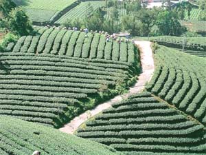 瑞里已是强调自然景致的世外桃源,过去曾有处处茶园,如今已逐渐被开发成风景区,隔邻的瑞峰则仍维持一片浓浓的茶乡色彩。从茶叶小径蜿蜒上至观日峰大窑,由制高点向四周望去,放眼之处都像是铺着一大片深绿色地毯的茶园,茶园正中央有座高小亭,左边威武的四大天王山则像是护法,守护着这片深藏在山里的绿色宝藏。