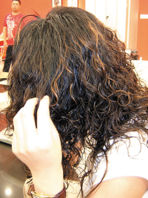 造型要诀:这类发型必须选择适当的造型产品让其充满光泽,这样才使小小的卷芯明显;不适合使用硬的造型产品,要选择含水份高、滋润性好的发蜡。