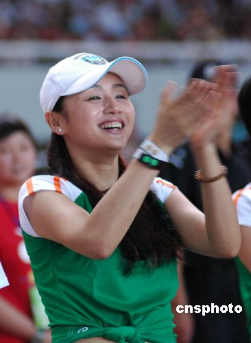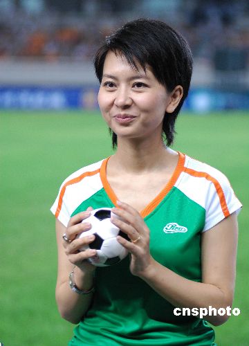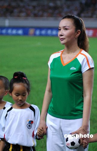 7月5日20时许,香港明星足球队与中国明星足球队在浙江台州体育馆举行一场友谊赛,台州近万名市民观看比赛。黄日华、成奎安、牛群、罗家英、李子雄、羽泉等明星在场上的一举一动,激起现场观众的阵阵欢呼。受观众情绪感染,场上明星们踢得格外卖力,场下曹颖、蔡明、甘苹等明星拉拉队呐喊助威,最终香港明星足球队6比5险胜内地明星足球队。中新社发 (郏策) 摄