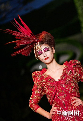2006年7月5日,2006/07秋冬高级女装发布在法国巴黎举行。图为模特展示英国设计师John Galliano 为Christian Dior设计的女装作品。