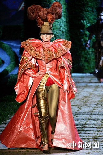2006年7月5日,巴黎高级女装发布。图为模特在展示英国设计John Galliano为Christian Dior设计的作品。
