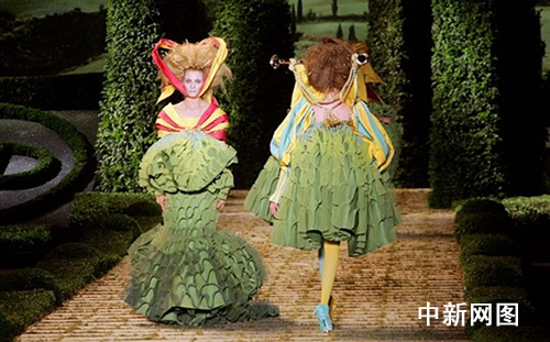 2006年7月5日,巴黎高级女装发布。图为模特在展示英国设计John Galliano为Christian Dior设计的作品。