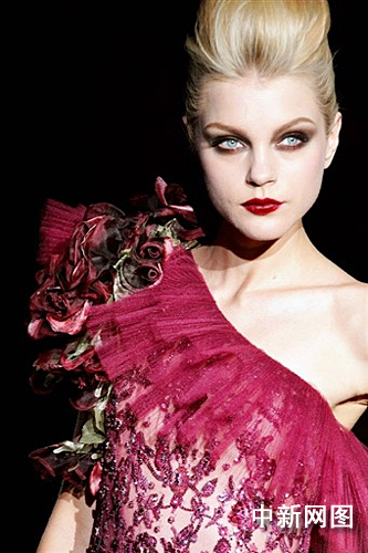 2006年7月5日,2006/07秋冬高级女装发布在法国巴黎举行。图为模特展示意大利设计师Valentino的最新设计作品。