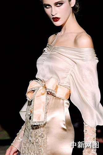2006年7月5日,2006/07秋冬高级女装发布在法国巴黎举行。图为模特展示意大利设计师Valentino的最新设计作品。