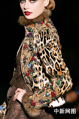 2006年7月5日,2006/07秋冬高级女装发布在法国巴黎举行。图为模特展示意大利设计师Valentino的最新设计作品。