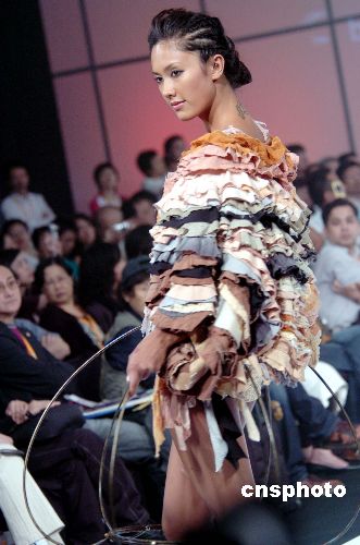 7月11日,香港理工大学纺织及制衣学系硕士毕业生时装作品展在会展中心举行,模特演绎13名获选的毕业生创意服饰设计。中新社发 洪少葵 摄