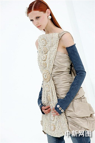 2006巴黎秋冬高级成衣秀上,模特展示由德国设计师 Karl Lagerfeld 为 Chanel 设计的高级成衣作品。