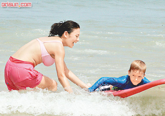 图文:"星女郎"张雨绮穿粉色泳衣冲浪劲晒好身材(4)