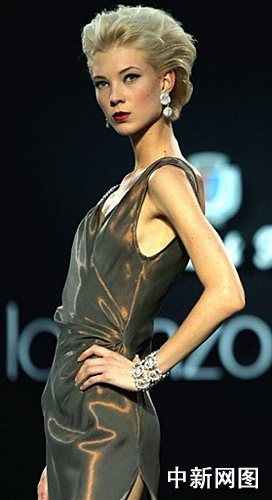 2006年7月12日,意大利罗马,模特在2007秋冬女装成衣展展示Gattinoni设计的服装。