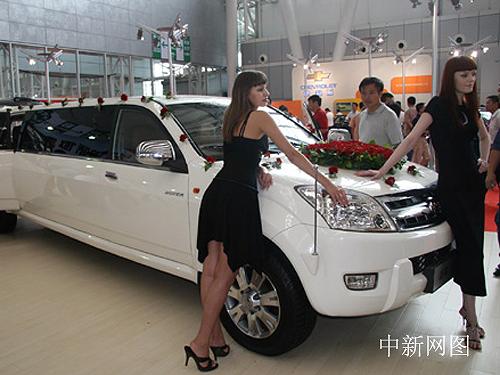 中新网7月13日电 (王亮)2006第九届哈尔滨国际车展于7月13日隆重开幕,国产首款加长车哈弗.派在车展上首次亮相,车长6.72米,车价298800元,引起强烈关注。