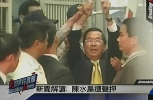 图:陈水扁被声请羁押 铐往法院出庭听判
