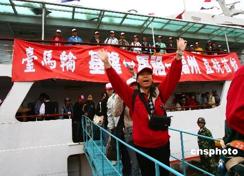 图:“台马轮”基隆-马祖-福州首航 台胞受到热烈欢迎