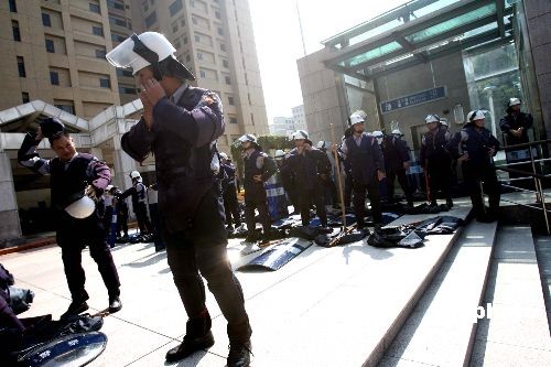 图:警方在台北宾馆严阵以待护卫"马陈会"