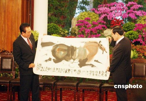 图:江丙坤送长鬃山羊和梅花鹿画册