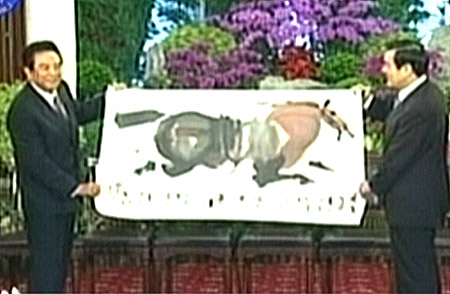 图:陈云林江丙坤出席两岸互赠珍稀动植物仪式