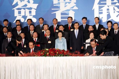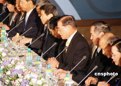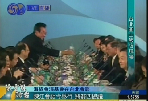 图:会谈间隙陈云林江丙坤互相倒水显温情