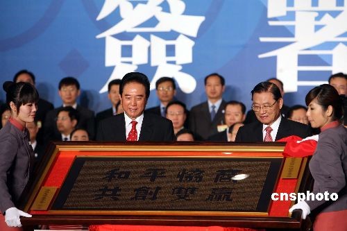 图:江丙坤赠陈云林"和平协商 共创双赢"匾额