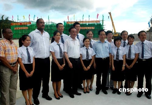 图:吴邦国在塞舌尔接见中国青年志愿者