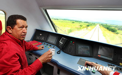 图:委内瑞拉总统参加中国火车试车活动