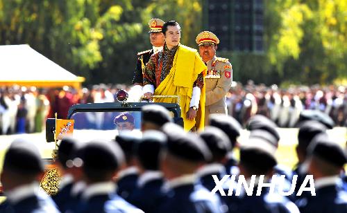 图:不丹新国王发表加冕演说并检阅军队