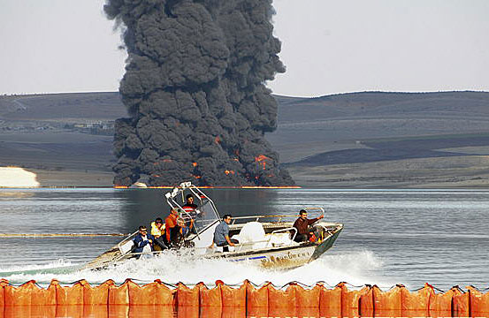 图:伊土石油管线爆裂造成大量原油外泄