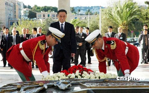 吴邦国向阿尔及利亚无名烈士纪念碑敬献花圈