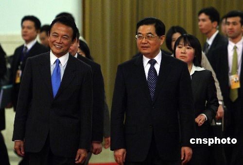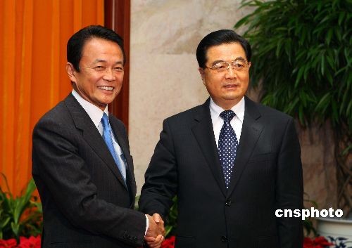 图:胡锦涛会见日本首相麻生太郎