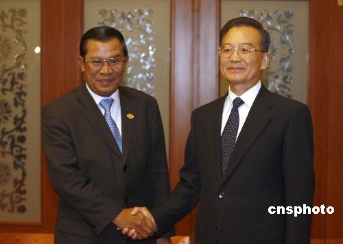 图:温家宝会见柬埔寨首相洪森
