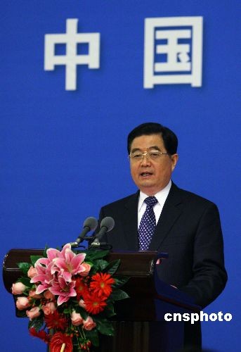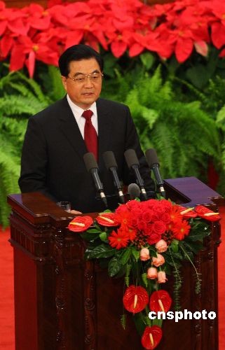 图:胡锦涛与日本首相麻生太郎出席招待会