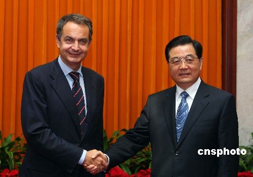 图:胡锦涛会见西班牙首相萨帕特罗