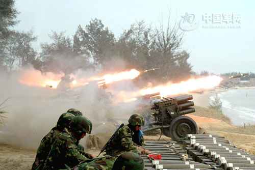 解放军某107mm火箭炮分队实弹射击:战炮齐射