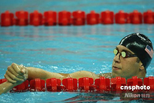 图:菲尔普斯夺得北京奥运会男子400米个人混合泳金牌