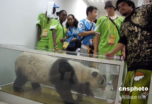 图:奥林匹克青年营外国营员青睐大熊猫