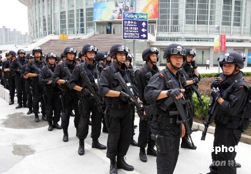 图:武警荷枪实弹确保上海奥运赛事进行