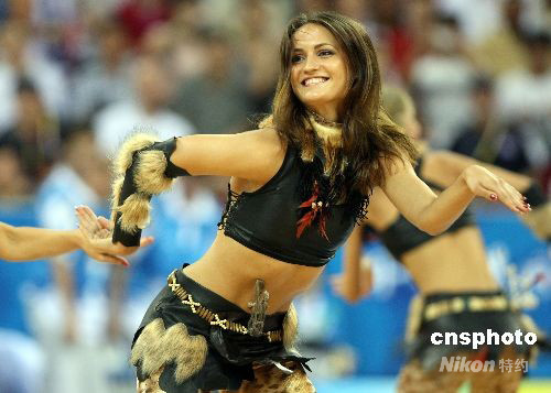 图:“篮球馆魅力之舞”啦啦队引人眼球