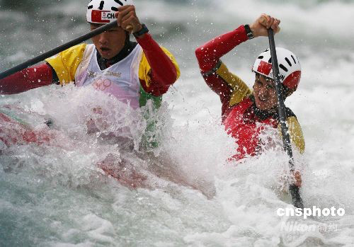 图:激流回旋男子双人划艇半决赛在雨中举行