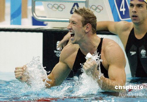 图:北岛康介夺得200米蛙泳金牌成为双冠王