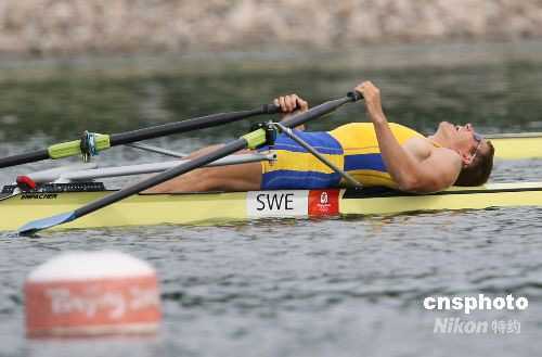 图:奥运赛艇比赛 瑞典选手享受赛后清闲