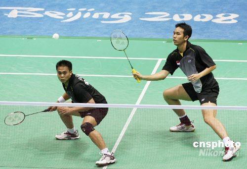 图:羽毛球男子双打 印尼组合夺金中国获第二