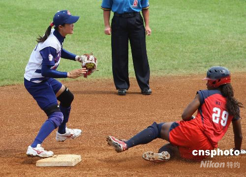 图:奥运垒球赛中华台北队0比7不敌美国队