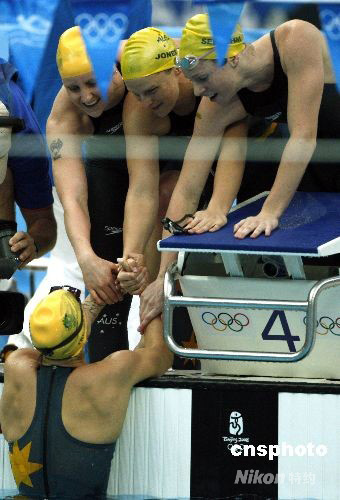 图:澳大利亚队夺得奥运女子4x100米混合泳冠军