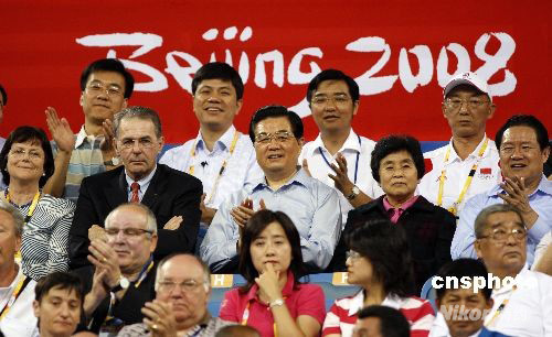 图:胡锦涛夫妇与罗格夫妇同看乒乓球女团决赛