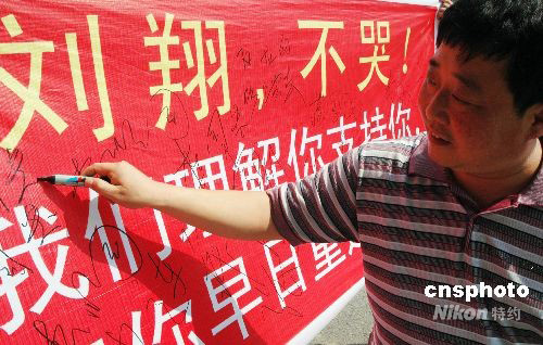 图:刘翔遗憾因伤退赛 观众久久不舍退场
